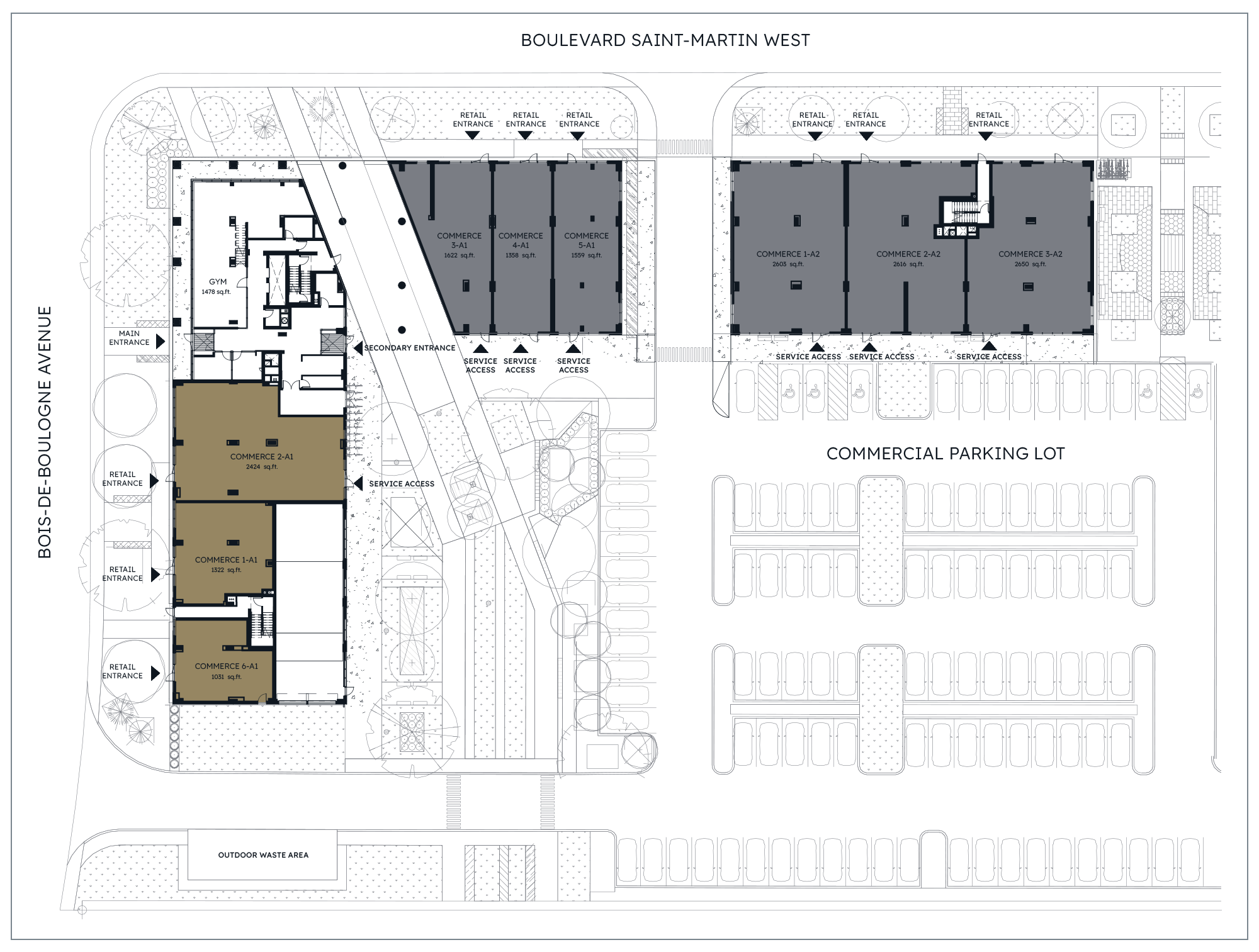 Discover the commercial locations of the Elora project, with a prime location at the intersection of Boulevard Saint-Martin and Rue Bois-de-Boulogne. A highly frequented urban space.